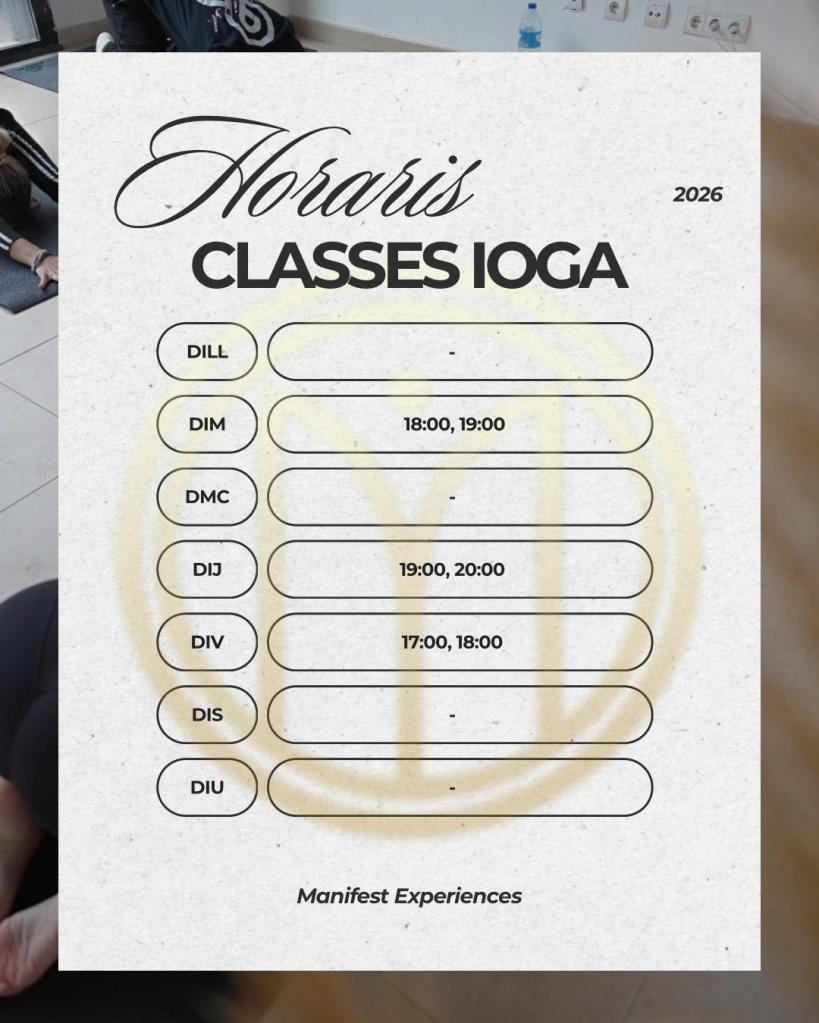 Classes íntimes i conscients amb màxim 5 persones per sessió, perquè cada pràctica sigui realment personal. Un espai tranquil, proper i cuidat, on el moviment, la respiració i la presència es treballen amb atenció individualitzada i qualitat.